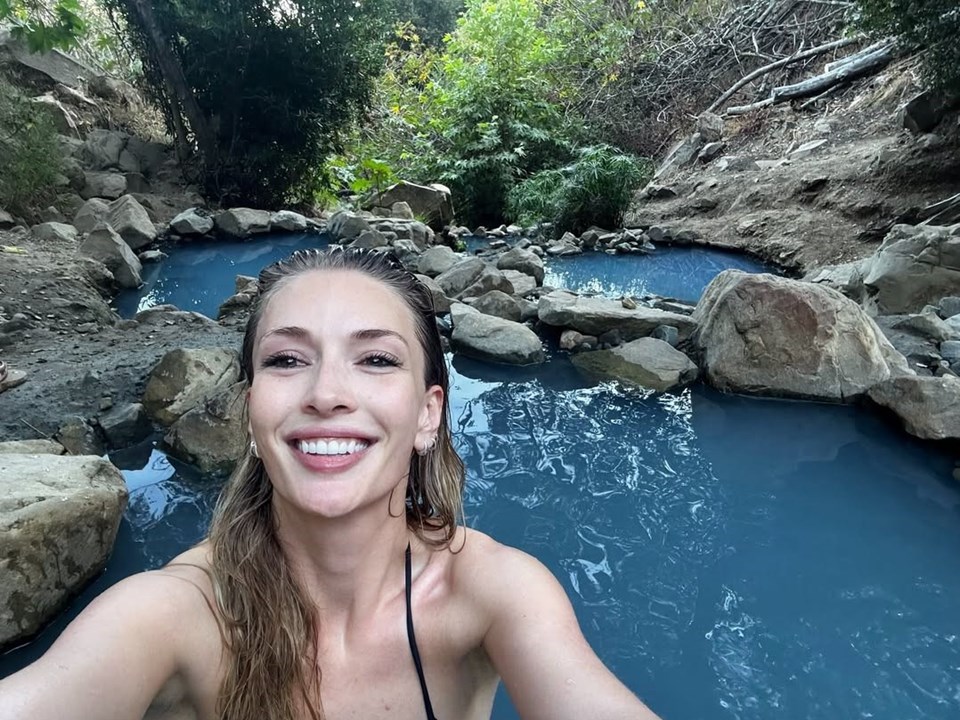 Siyah bikinisiyle doğal bir ortamda suya giren 36 yaşındaki Allen, paylaşımına “Termal” notunu düştü.