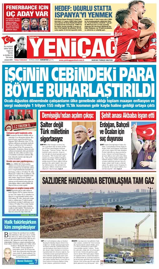 Yeniçağ Gazetesi’nin bugünkü manşeti…